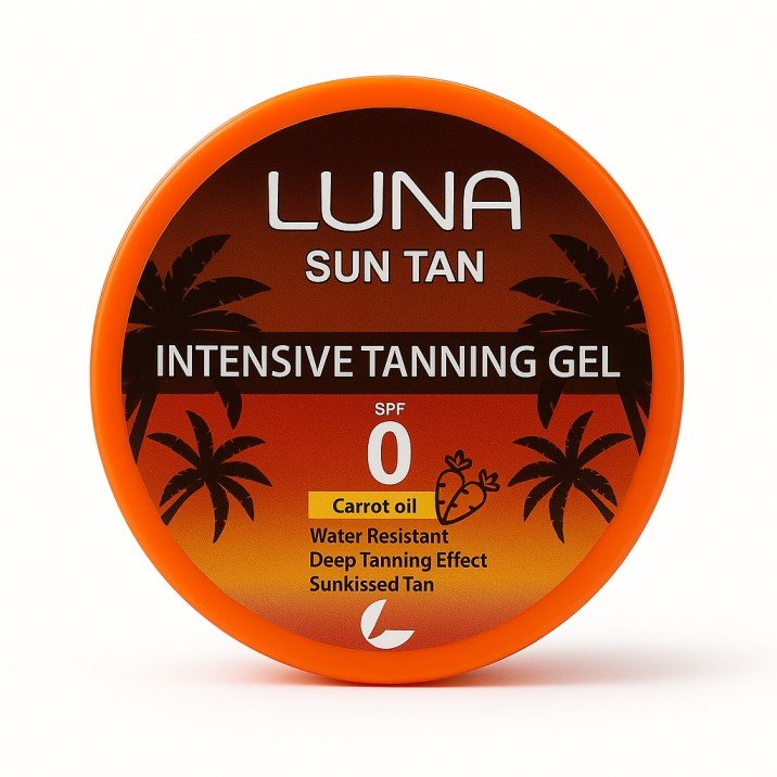 Luna Intensive Tanning Gel SPF 0 with carrot oil and B-carotene gives a deep bronze tan while moisturizing the skin. Water-resistant and enriched with Vitamin E and Jojoba Oil.